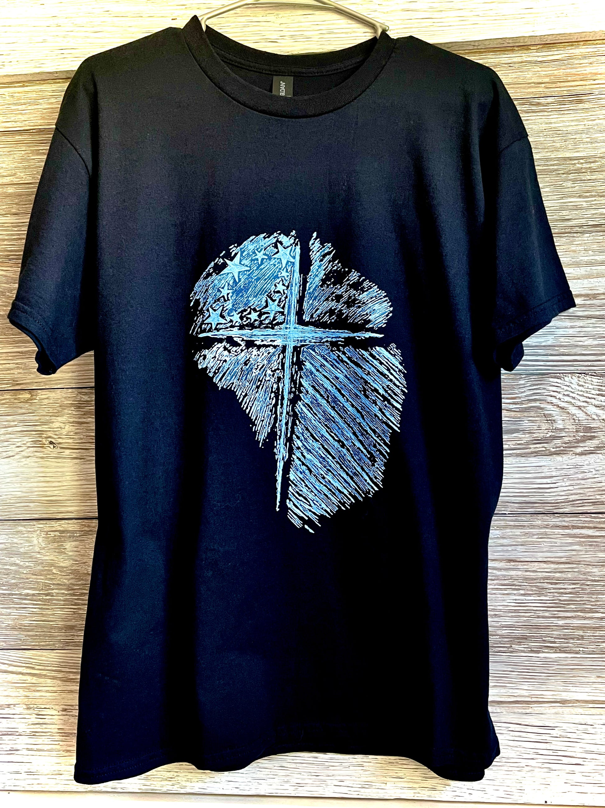 This men's T-shirt presents a sophisticated "Faith" fingerprint design, merging personal identity with spiritual symbolism. Perfect for men who appreciate meaningful apparel that expresses their beliefs with subtlety and style.